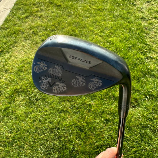 - Engravings come out in a dark grey tone for chrome and raw finish clubs, and black wedges are engraved to the steel underneath.